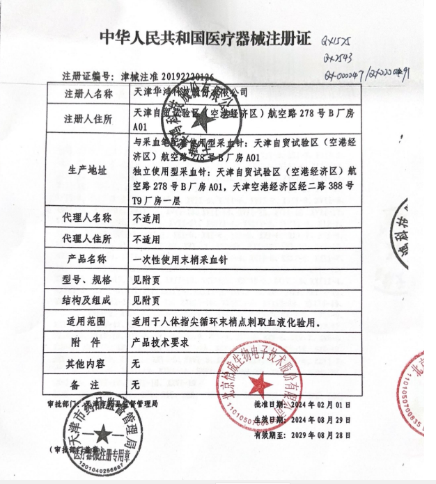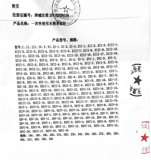 商品名称: (买试纸自带)一次性使用末梢采血针 批准文号: 津械注准20192220126