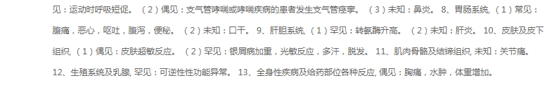 【不良反应】不良反应的发生率约为10%,通常与剂量有关。偶有关节痛、肝炎、肌肉疼痛性痉挛、口干、结膜炎样症状、鼻炎和注意力损害以及在伴有血管疾病的患者中出现坏疽的病例报道。