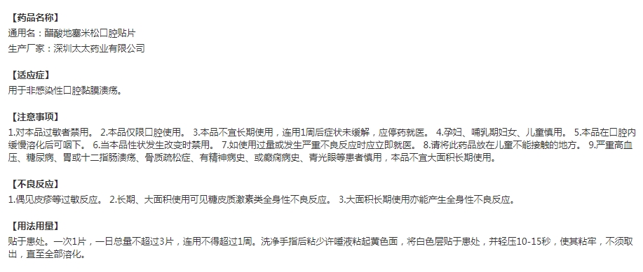 商品名称: 意可贴 醋酸地塞米松口腔贴片 批准文号: 国药准字H19991372