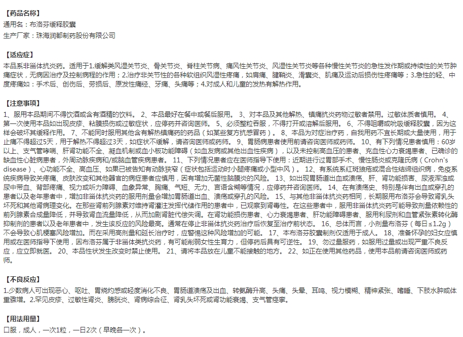 商品名称: 布洛芬缓释胶囊 批准文号: 国药准字H20066822