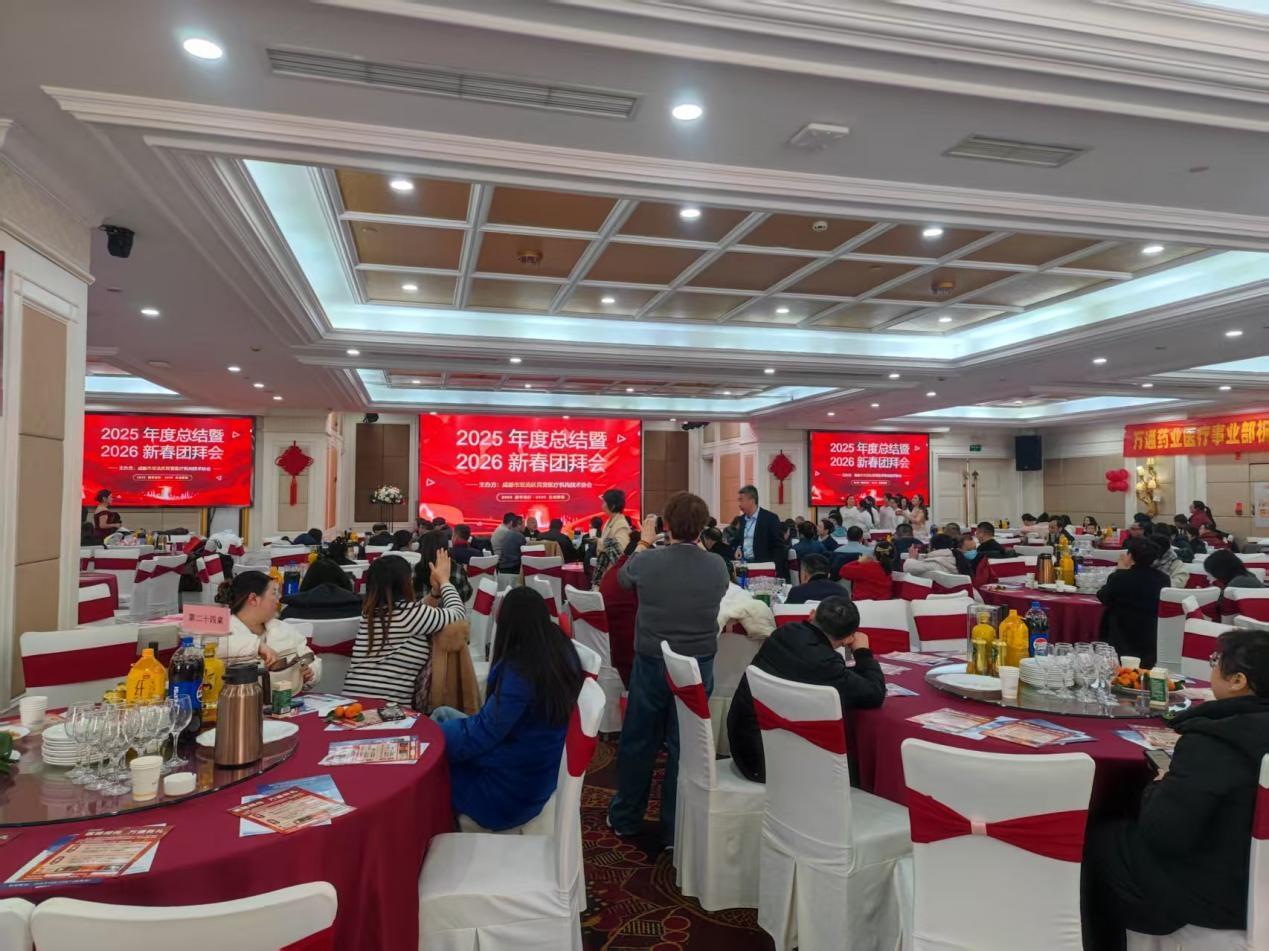 2026年1月26日,成都市双流区民营医疗机构技术协会2025年度总结暨2026新春团拜会在双流广都酒店顺利举办。本次大会以“总结过去、展望未来、凝聚共识、共谋发展”为主题,齐聚行业嘉宾、兄弟协会代表、区内民营医疗从业者、合作伙伴及协会全体会员单位代表近400人,共话行业发展成果,同绘民营医疗未来新蓝图。