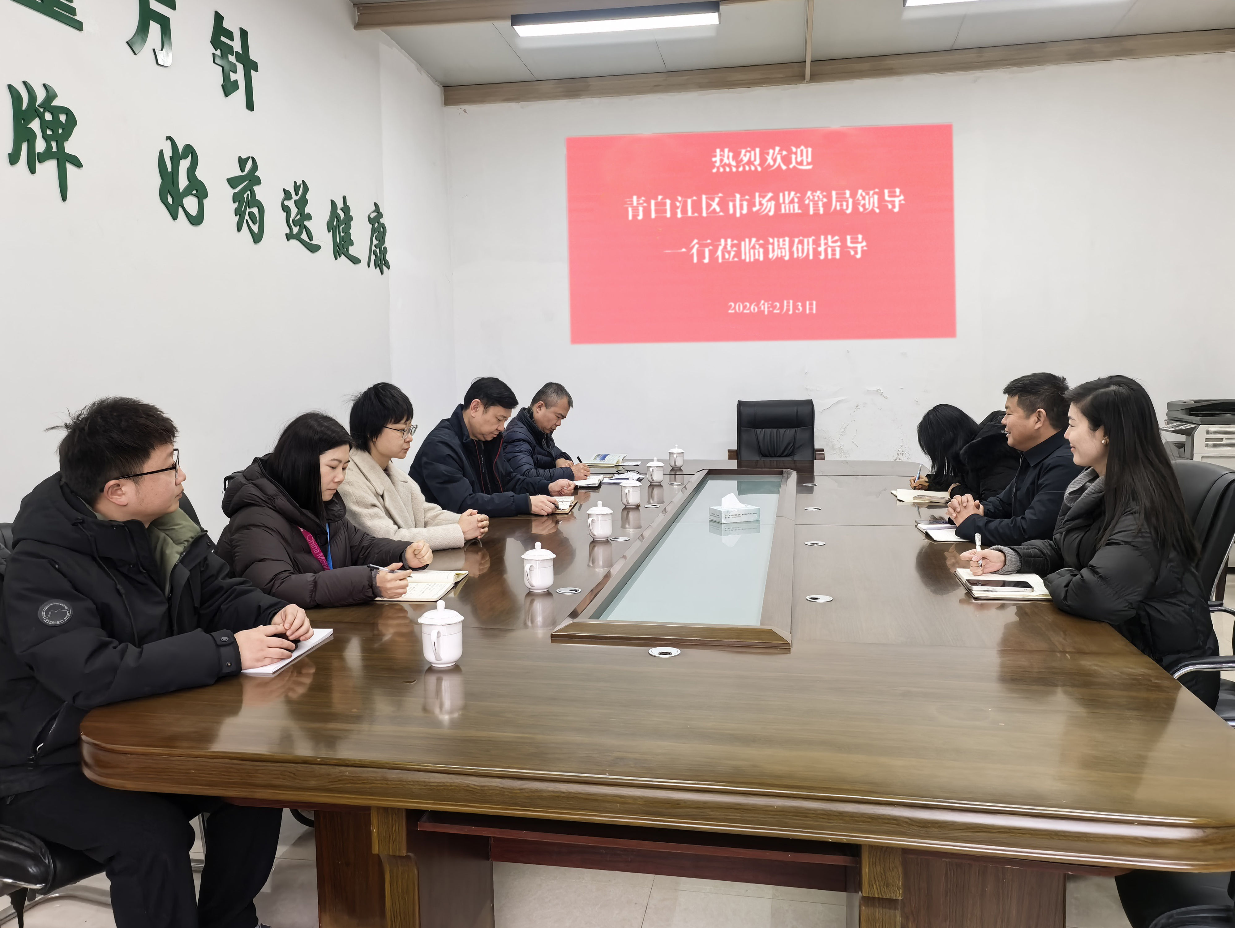 2026年2月3日,青白江区市场监督管理局领导带队赴四川怡仁堂药业有限公司开展专题调研,深入了解企业经营与创新发展需求,公司主要负责人全程陪同并参与座谈,双方围绕药品安全监管、产业创新支持等议题展开交流。